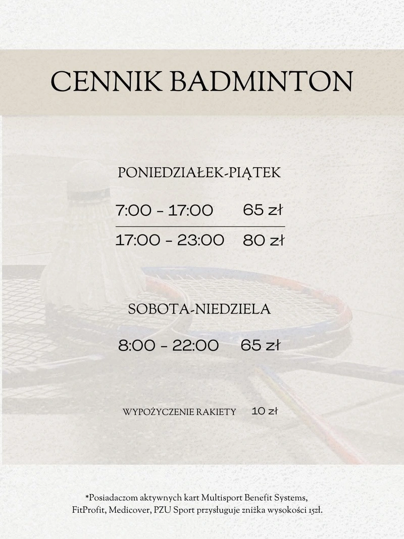Cennik Badminton